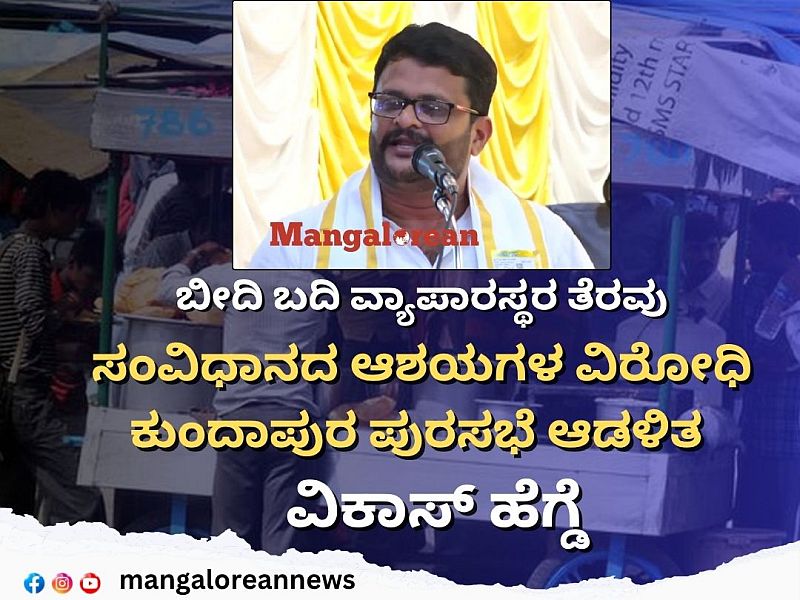 ಕುಂದಾಪುರ: ಅಂಬೇಡ್ಕರ್ ಭಾರತೀಯರಿಗೆ ನೀಡಿದ ನಮ್ಮ ಹೆಮ್ಮೆಯ ಸಂವಿಧಾನದ ಪರಿಚ್ಚೇದ 19(1)(ಜಿ) ಸ್ಪಷ್ಟವಾಗಿ ಉದ್ಯೋಗ, ವ್ಯಾಪಾರ, ವ್ಯವಹಾರ ನಡೆಸುವ ಅವಕಾಶಗಳ ಕುರಿತು ಹೇಳುತ್ತದೆ. ಇವತ್ತು ಶುಚಿತ್ವ, ಪಾರ್ಕಿಂಗ್ ಇತ್ಯಾದಿ ನೆವನಗಳನ್ನು ಇಟ್ಟುಕೊಂಡು ಬಿಜೆಪಿ ಆಡಳಿತದ ಕುಂದಾಪುರ ಪುರಸಭೆ ಬೀದಿ ಬದಿ ವ್ಯಾಪಾರಸ್ಥರನ್ನು ಒಕ್ಕಲೆಬ್ಬಿಸ ಹೊರಟದ್ದು ಸಂವಿಧಾನ ವಿರೋಧಿ ಕ್ರಮವಾಗಿದೆ ಎಂದು ಜಿಲ್ಲಾ ಕಾಂಗ್ರೆಸ್ ವಕ್ತಾರ ಕೆ. ವಿಕಾಸ್ ಹೆಗ್ಡೆ ಆಕ್ರೋಶ ವ್ಯಕ್ತಪಡಿಸಿದ್ದಾರೆ.