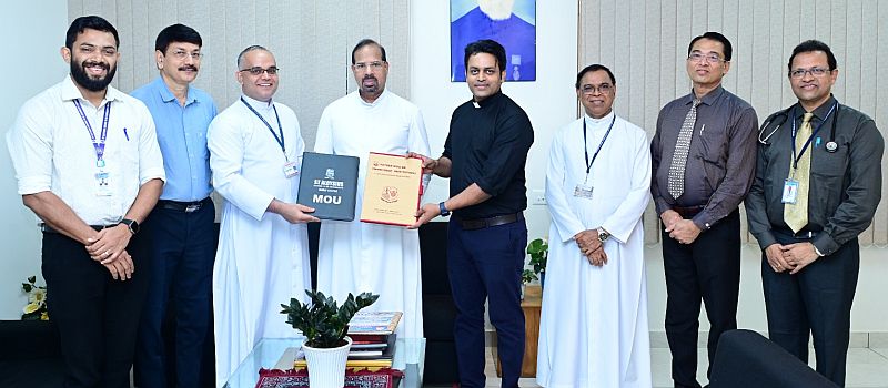 Mangalore: A Memorandum of Understanding (MoU) was formally signed between the Aloysius Institute of Management and Information Technology (AIMIT) and Father Muller Medical College Hospital (FMMCH) on 17th October 2025, in the presence of the Management Committee Members of Father Muller Charitable Institutions (FMCI), led by Rev. Fr Faustine Lucas Lobo, Director, FMCI, and Rev. Dr Kiran Coth SJ, Director, AIMIT Centre, St Aloysius Deemed to be University.
