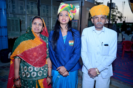 Her husband, Om Prakash Bhati, a proud father in his seventies, nods in agreement. “We do Lakshmi Puja during Diwali,” he says softly. “But our daughter is our real Lakshmi. She has brought glory to our family and village, and everyone is proud of her. She is an inspiration for other girls who now want to step out of pardah and excel in education and sports.”