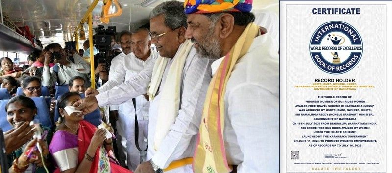 The certificate further mentioned, “The world record of highest number of bus rides women availed via the free travel scheme in Karnataka (mass) was achieved by KSRTC, BMTC, NWKRTC, KKRTC, Minister Ramalinga Reddy, government of Karnataka on July 16, 2025 from Bengaluru (Karnataka) India. 500 crore bus rides availed by women under the Shakti scheme, launched by the Karnataka government on June 11, 2023, to promote women’s empowerment, as of records up to July 16, 2025.”
