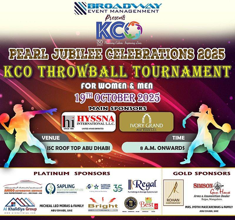 Abu Dhabi: The Konkani Cultural Organisation (KCO), a highly respected name in the UAE, GCC, and India, has announced the KCO Throwball Tournament as part of its year-long Pearl Jubilee celebrations. The tournament is scheduled to take place on 19 October 2025 at the India Social Center Rooftop in Abu Dhabi, commencing at 8:00 A.M.