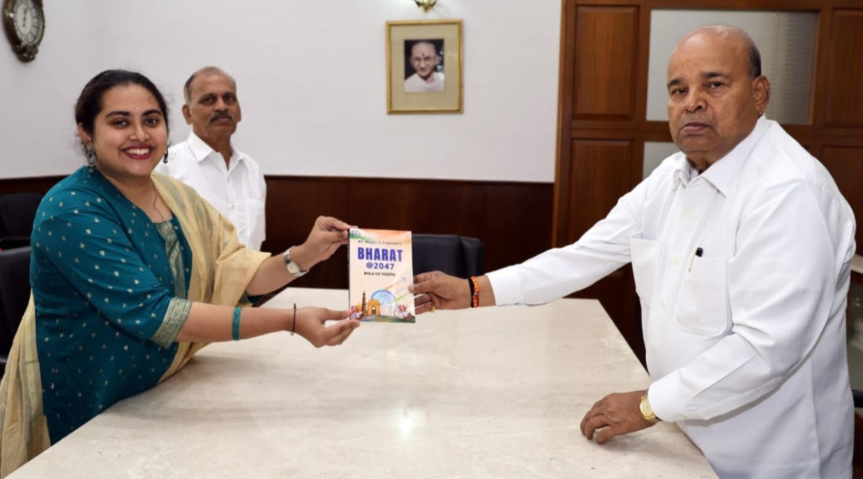 Bengaluru: Mangalorean author Ms. Reshel Bretny Fernandes presented her book, “Bharat at 2047: Role of Youth,” to His Excellency the Governor of Karnataka, Sri Thawar Chand Gehlot, at Rajbhavan Bengaluru. The presentation took place during a formal meeting where the Governor commended Ms. Fernandes for her literary work and dedication to exploring themes relevant to the nation’s future.