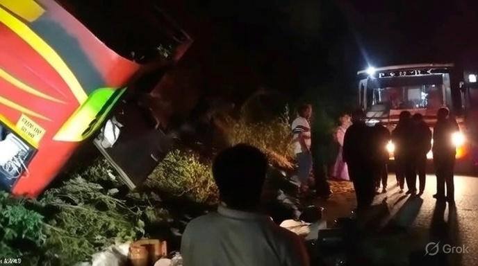 The bus carrying 37 people, including two drivers, was heading to Bhadrachalam. The passengers were all from the Chittoor district who were on their way to the Bhadrachalam temple in Telangana from Araku.