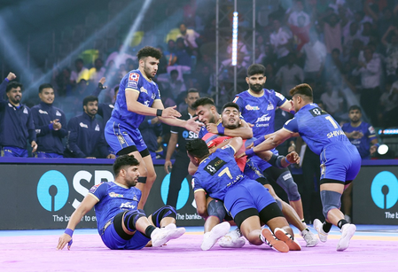 Jaideep Dahiya led the way with a high five, and Shivam Patare also made his mark with a super 10. Substitute Ghanshyam Magar also made his presence felt with eight raid points, while Neeraj secured four tackle points.