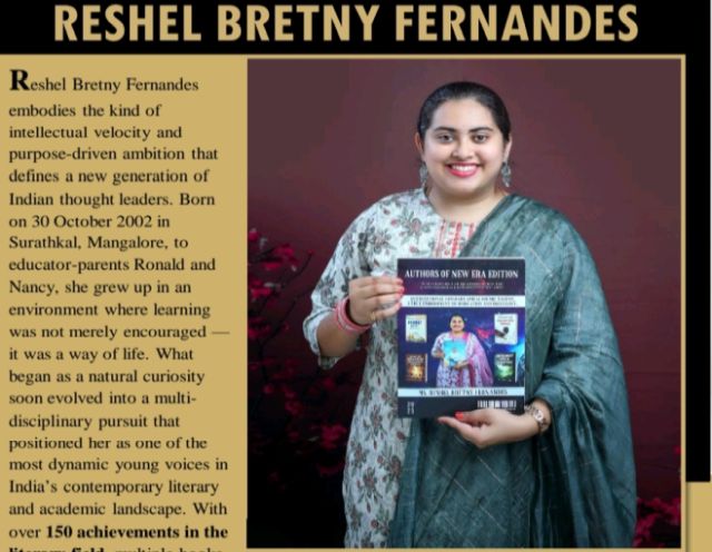 Bangalore: Renowned author and orator Reshel Bretny Fernandes has garnered international recognition, with a feature in the prestigious International Literature Today magazine. This acknowledgement celebrates Fernandes’ significant contributions to literature and her insightful perspectives on contemporary Indian society and governance.