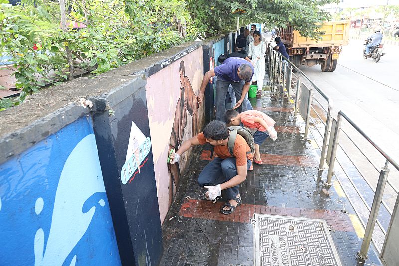 Mangaluru: The Ramakrishna Mission’s Swachh Mangaluru Abhiyan continued its efforts in November with a focus on maintaining cleanliness and restoring public spaces. The month’s drive commenced with a special emphasis on the wall murals adorning the compound walls of Wenlock Hospital, Mangaluru.