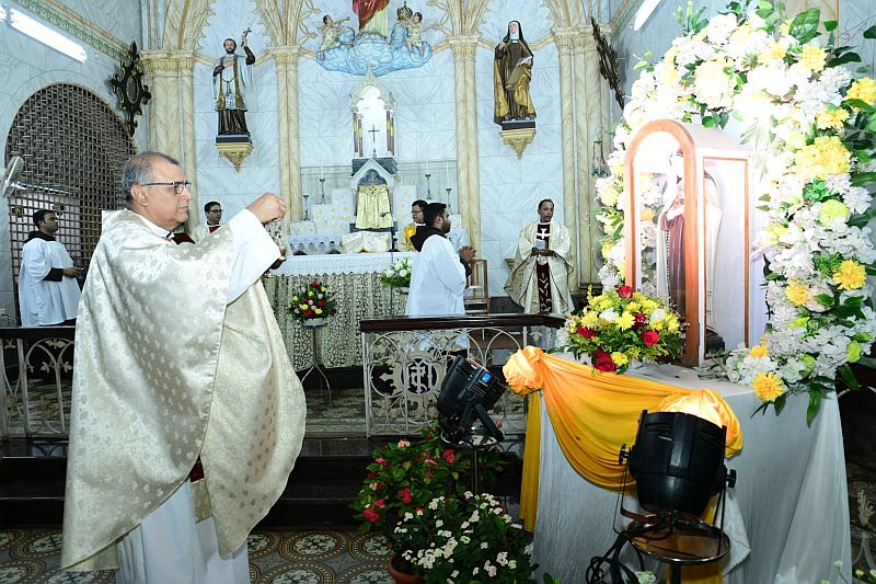 In the days leading up to the feast day, a Triduum was observed on September 28, 29, and 30. These days of prayer and reflection served to prepare the community spiritually for the solemnity. On October 1, the feast day itself, Fr. Ligoury Crasta led a Eucharistic Adoration from 4:15 to 5:15 p.m. The Adoration fostered a serene and contemplative environment, setting the stage for the Solemn Eucharistic Celebration that followed.