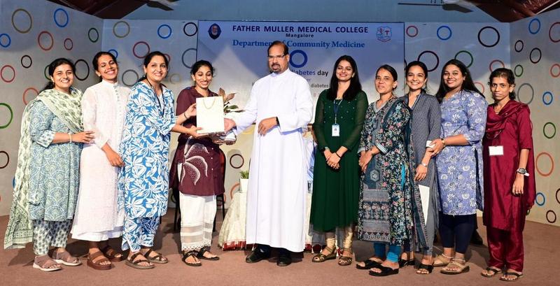 Mangalore: The Father Muller Charitable Institutions (FMCI) hosted the valedictory ceremony of the World Diabetes Day Campaign on 15 November 2025. The week-long observance, organised by the Department of Community Medicine, culminated in a meaningful gathering that highlighted workplace well-being and the importance of preventive health. Dr Sudeep K, Professor of Endocrinology at Father Muller Medical College Hospital, graced the occasion as the Chief Guest, while Rev. Fr. Faustine Lucas Lobo presided over the function.